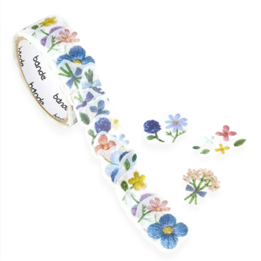Small Flowers Blooming in Embroidered Forest Washi Sticker Roll