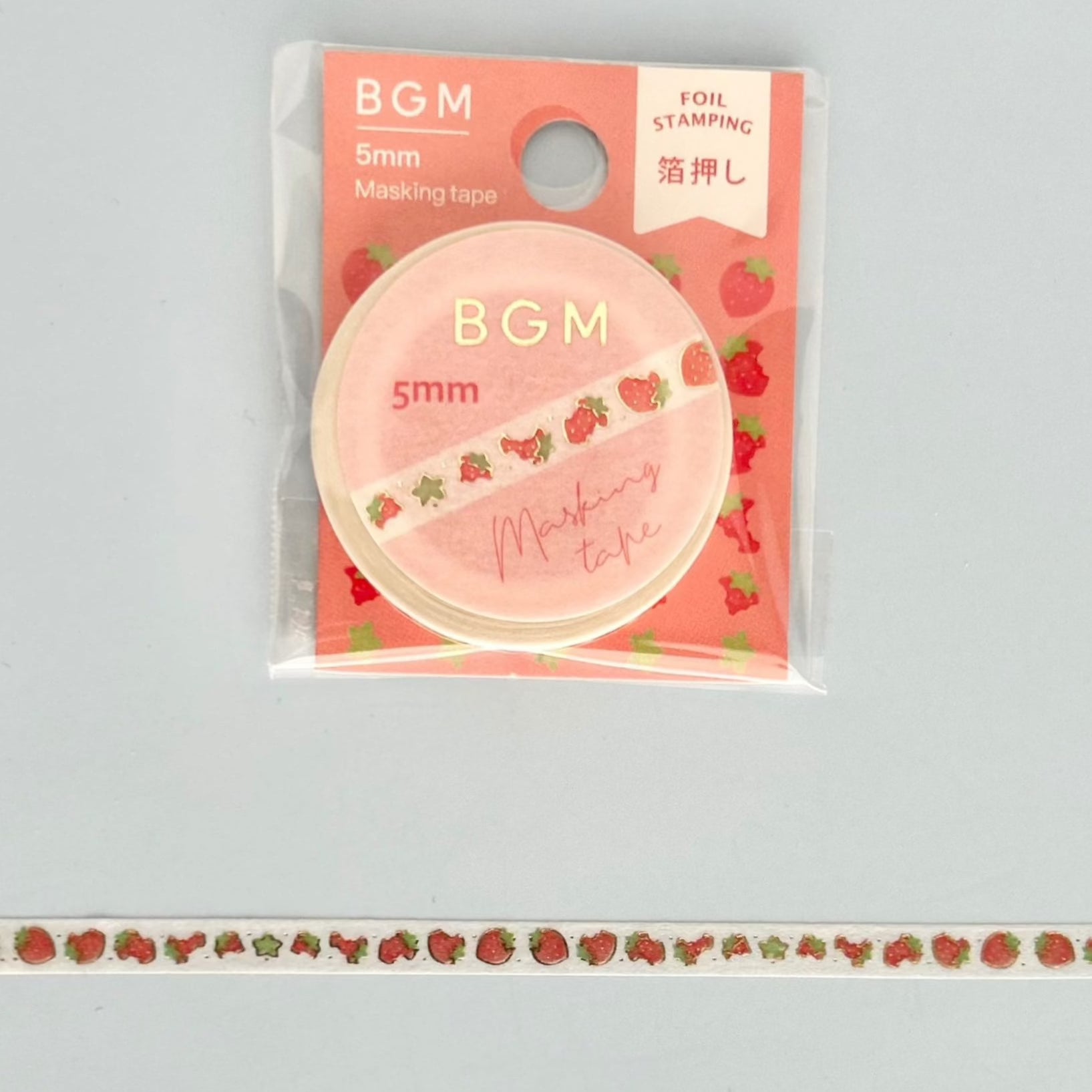 This cute masking tape by BGM has a strawberry illustration with gold foil accents. With its thin size you can use in small areas of journals, planners, or notebooks. This washi tape is easily removable and has high-quality printing.