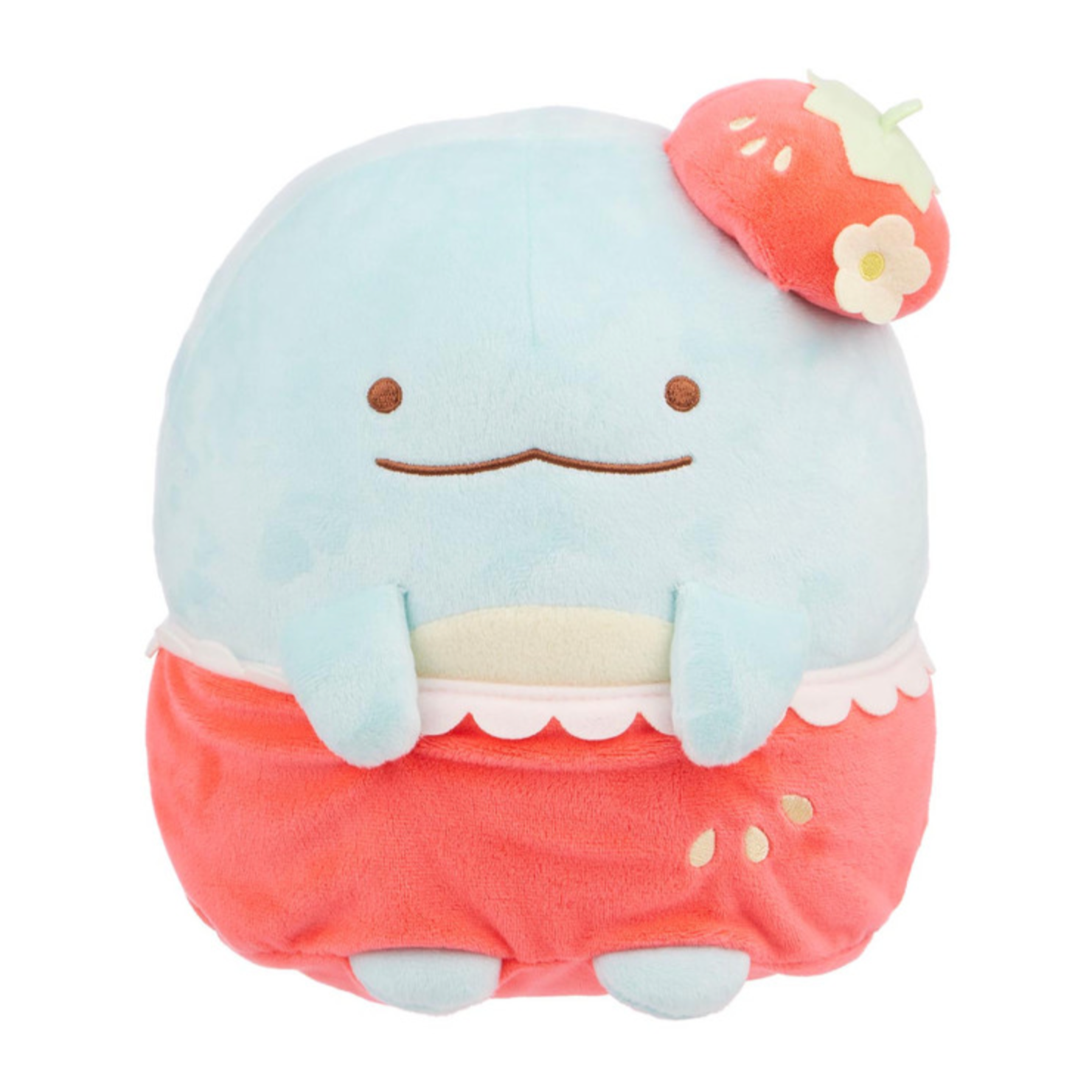 Tokage from Sumikkogurashi is joining the party and is wearing a STRAWBERRY themed outfit and has a deliciously refreshing sweet strawberry to snack on for the day on its head.