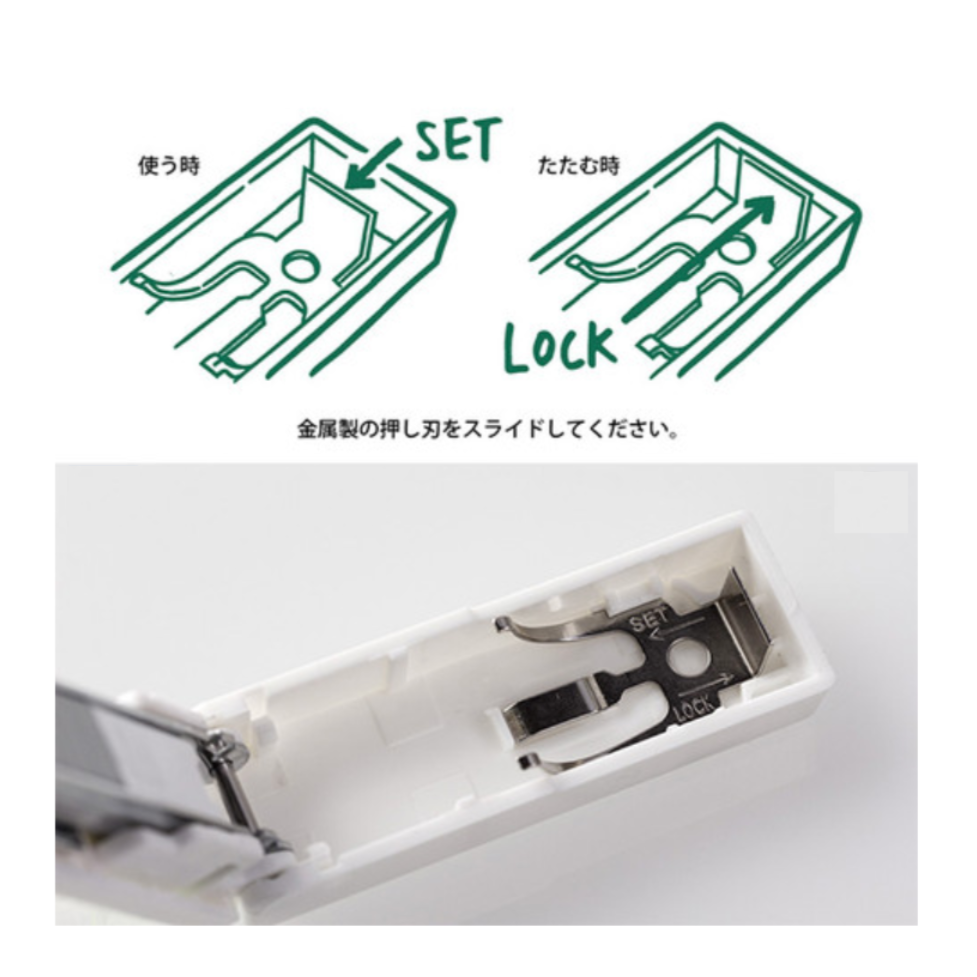 This mini stapler features a staple remover, and a slim profile that can be locked when not in use for safe and easy storage.